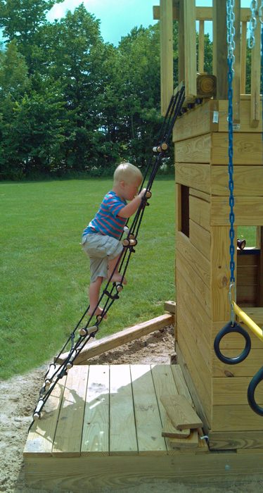 Rope, A-frame, extension, short, tall, wooden, aluminum, bolted in place, or movable, ladders are loose parts that’ll support a variety of play, exploration, experimentation, and personal challenges.