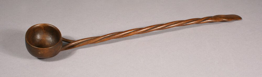 Ladles come in a variety of shapes, sizes, and materials. Try to add a variety of them to your collection. You’ll find them new for reasonable prices and can get great deals at thrift stores and yard sales. But if you run across any that look like the ones below, check their value before handing them over to the kids–these are all museum pieces.