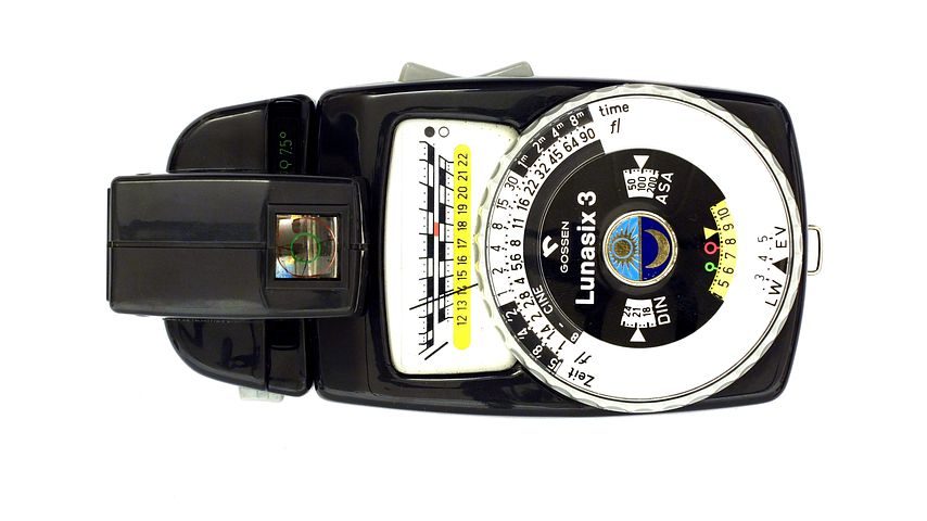 Unsurprisingly, light meters measure light–how bright it is–or not. Basically, you point the device at a face or room or puppy, and it’ll tell you how bright it is. Back in the day, before super-duper pocket computer devices, they were stand-alone units. Photographers and videographers used them to determine their lens settings. My Dad had one in is camera bag and I loved fiddling with it–how bright is this closet?, how bright is the sun? They were cool looking gizmos with a lot of character–scroll down for a couple examples.