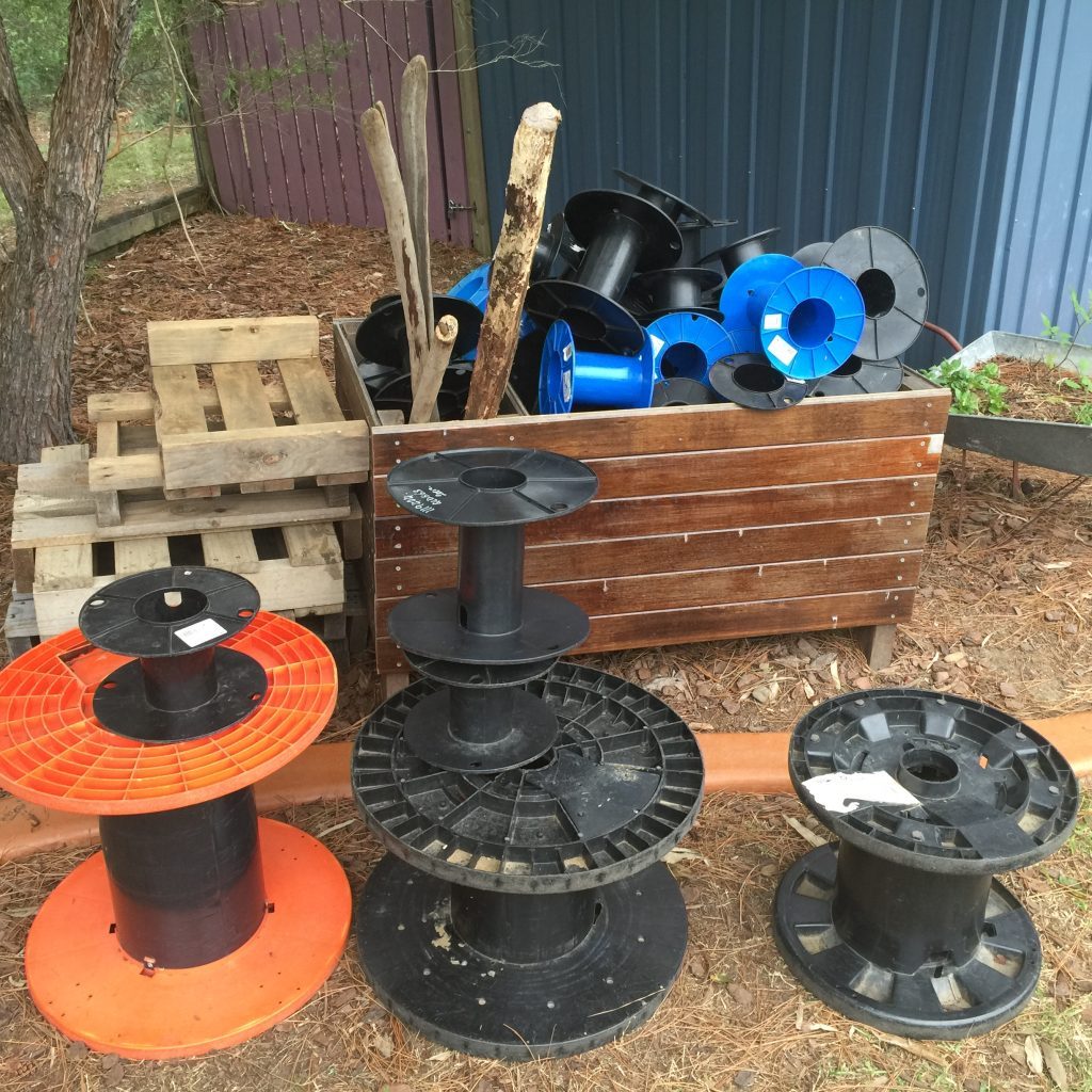 Cable spools come in lots of sizes and are usually pretty easy to get your hands on if you want them. Kids will climb them, roll them, stack them, and more.