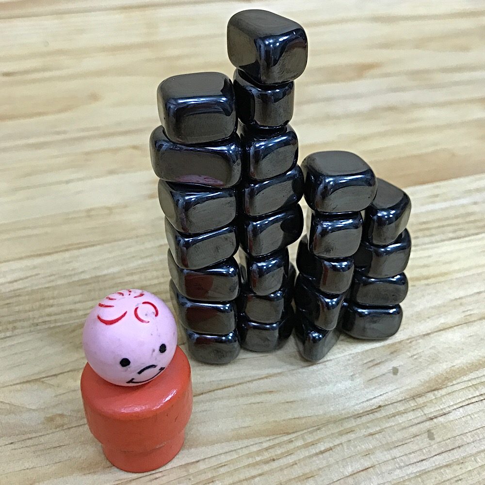 Magnetic hematite–bright, shiny magnetic objects that’ll grab the attention of children and spark all kinds of loose parts play and experimentation. With proper supervision, these bright magnetic bits are a great addition to play environments interested in sparking more STEM play and exploration. The stuff is available in a wide range of shapes and sizes. I used to order it wholesale in 20 pound boxes, so the kids would have mountains of it to play with.