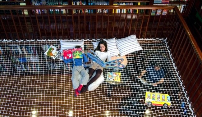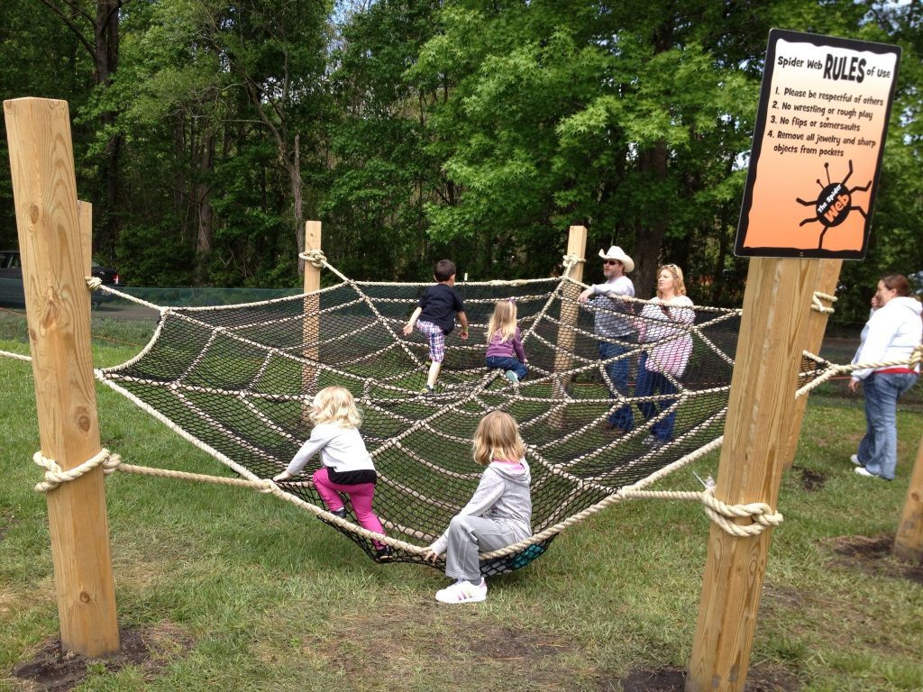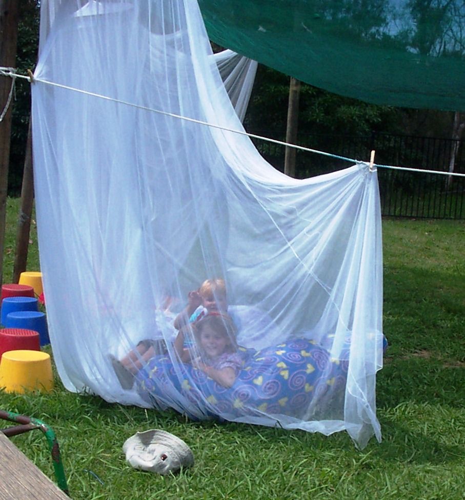 Fine sheets of the stuff are ideal for use in kid-constructed shelters, since adults can easily keep an eye on what’s happening inside the cozy spaces kids create (see photo below). On the other end of the spectrum, heavy-duty nets are great for climbing since they provide so many footholds and handholds.