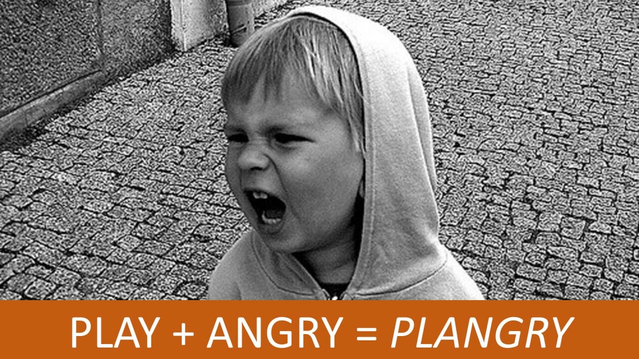 Playing at being plangry is also a way to get attention. Picture a seven-year-old pretending to be upset at a younger sibling’s birthday party to grab some attention from Aunt Agnes.