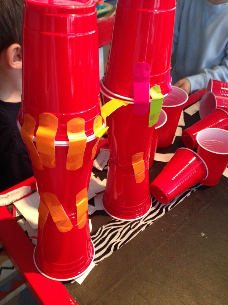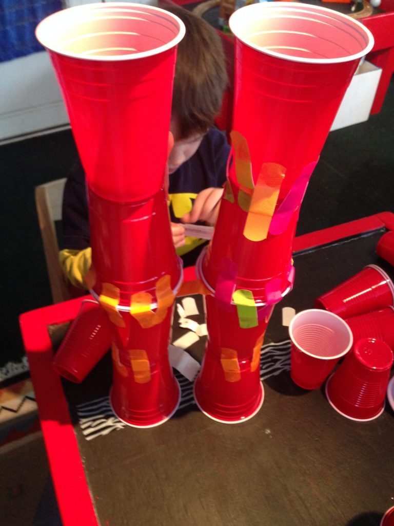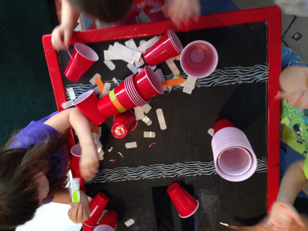 Plastic cups are loose parts that’ll spark block play and more–kids will love them in water play, sand play, mud play, and dramatic play, for example. One of their best features is the fact that they nest-making them easy to store.