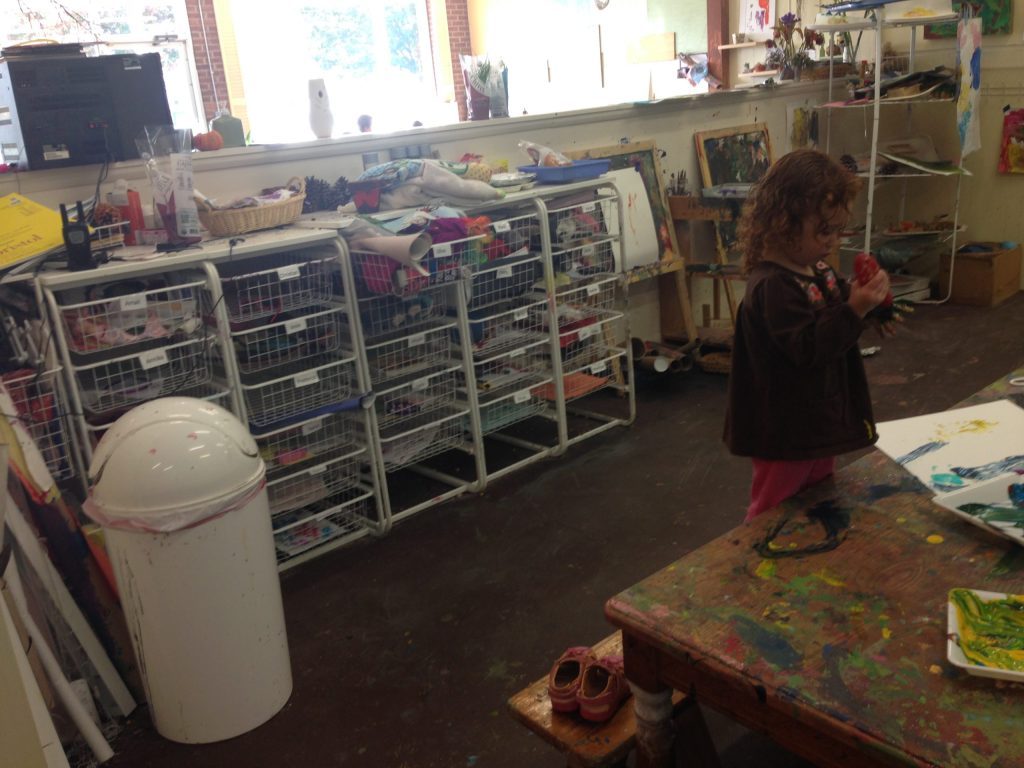 You can tell kids Do Stuff here. It has a feeling of disorganized organization. Things have homes, but there’s not a lot of fussiness. The space is a reminder that art is a process.
