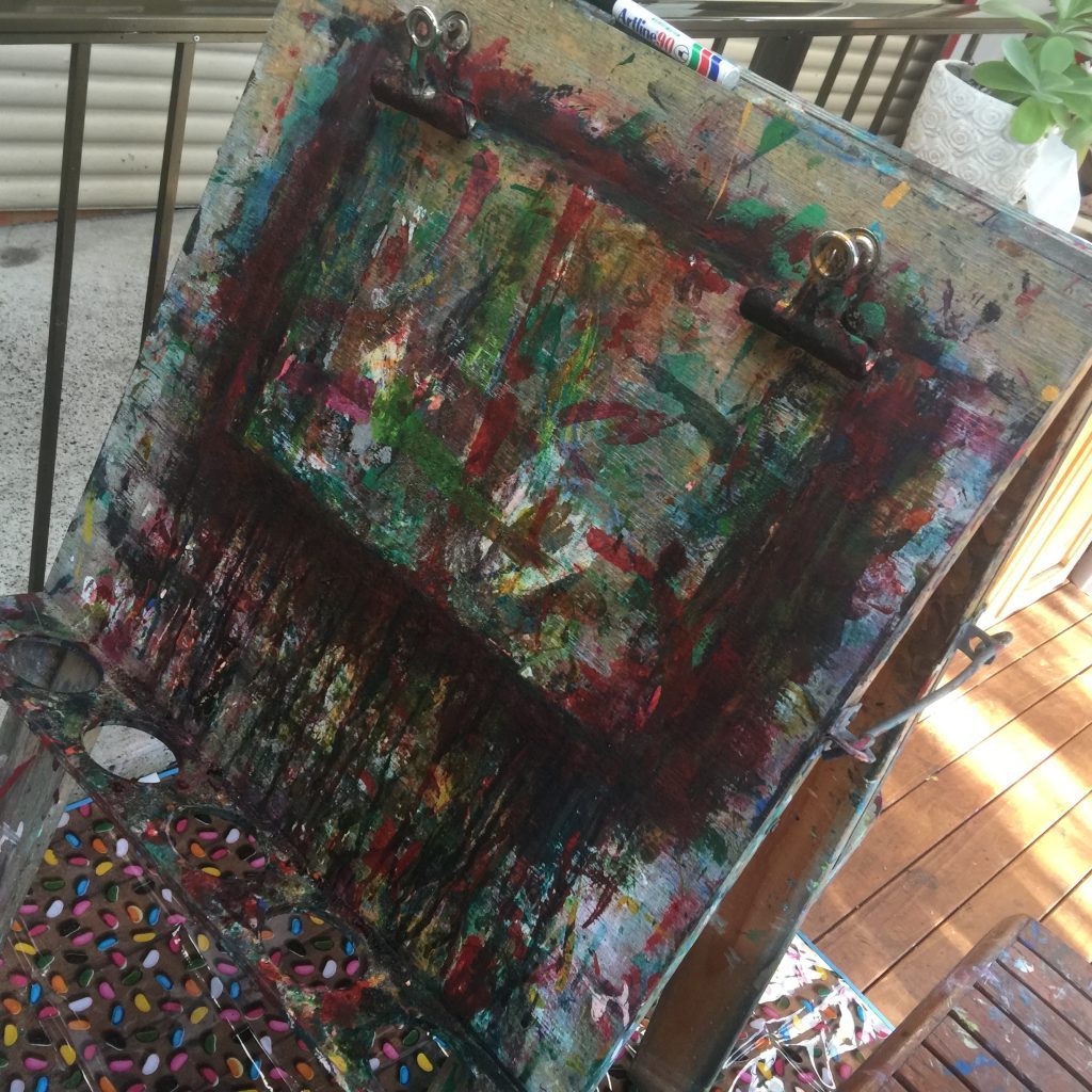 The patina of play is in the eye of the beholder. Sam feels this easel could use a refresh. She says, “it seems like the paint has created a textured layer on the easel, so some paper might not lay flat” and she wants to scrape it off to level the surface.