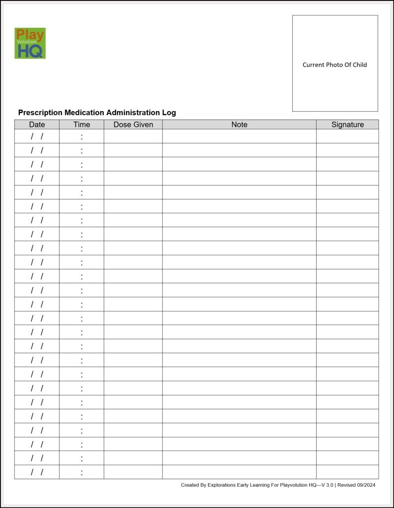 The form also includes a space to attach a current picture of the child. Doing so can be a valuable safeguard, especially in larger early learning programs with many children and where multiple staff members handle medications.