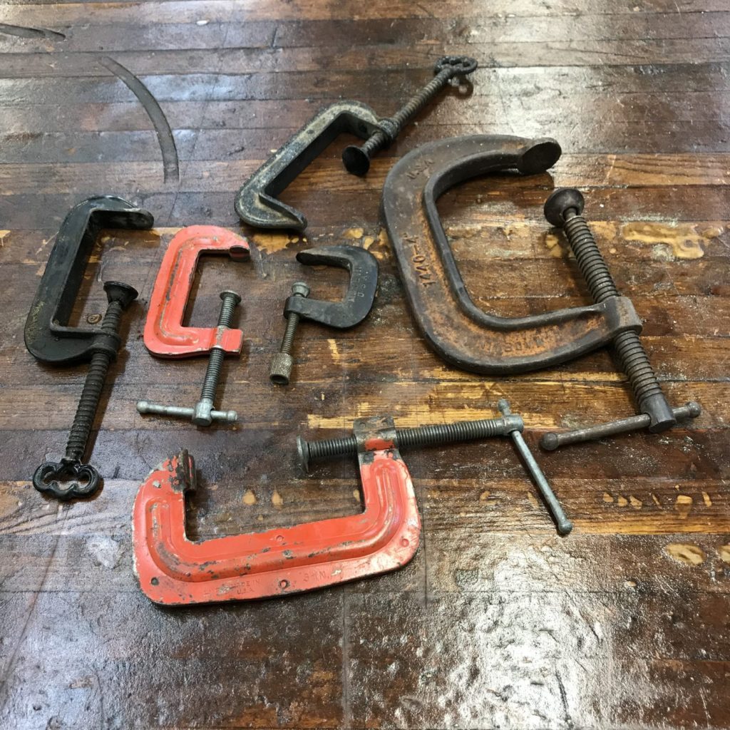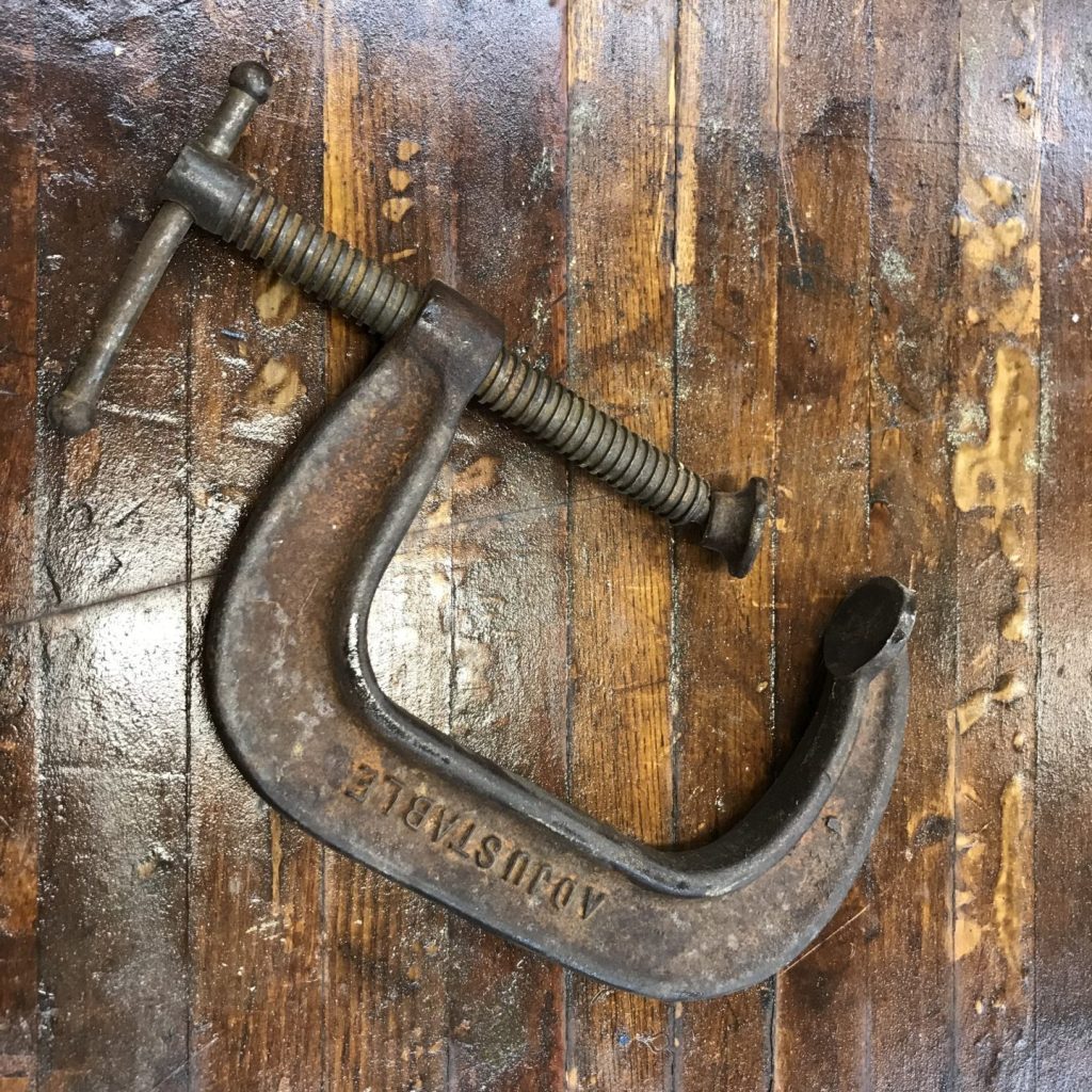 One last note about C clamps that’ll come in handy next time you’re at a cocktail party chatting about woodworking tools: They are note called C clamps because they look like the letter C. The C is for Carriage. They were originally called Carriage Maker Clamps and used for building, you guessed it, carriages.