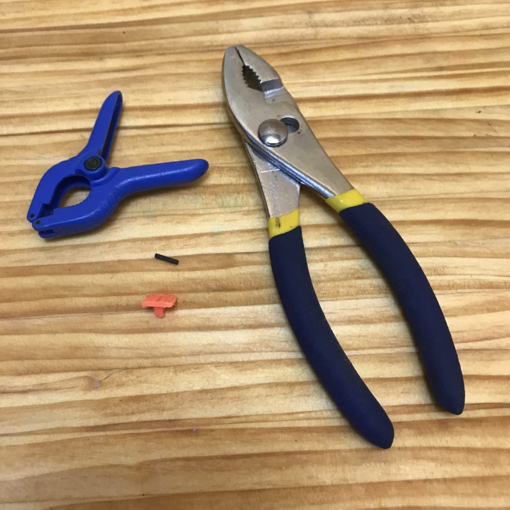 That said, if you want to play it safe, I recommend DIY clamp surgery to removing them from the clamps before introducing the clamps into the play space. It’s simple–just grab the bit of plastic with a pair of pliers and give it a twist. The plastic bit will come off and you can slip the retaining pin from the clamp. It takes seconds per clamp–no fuss, no muss, no worries.