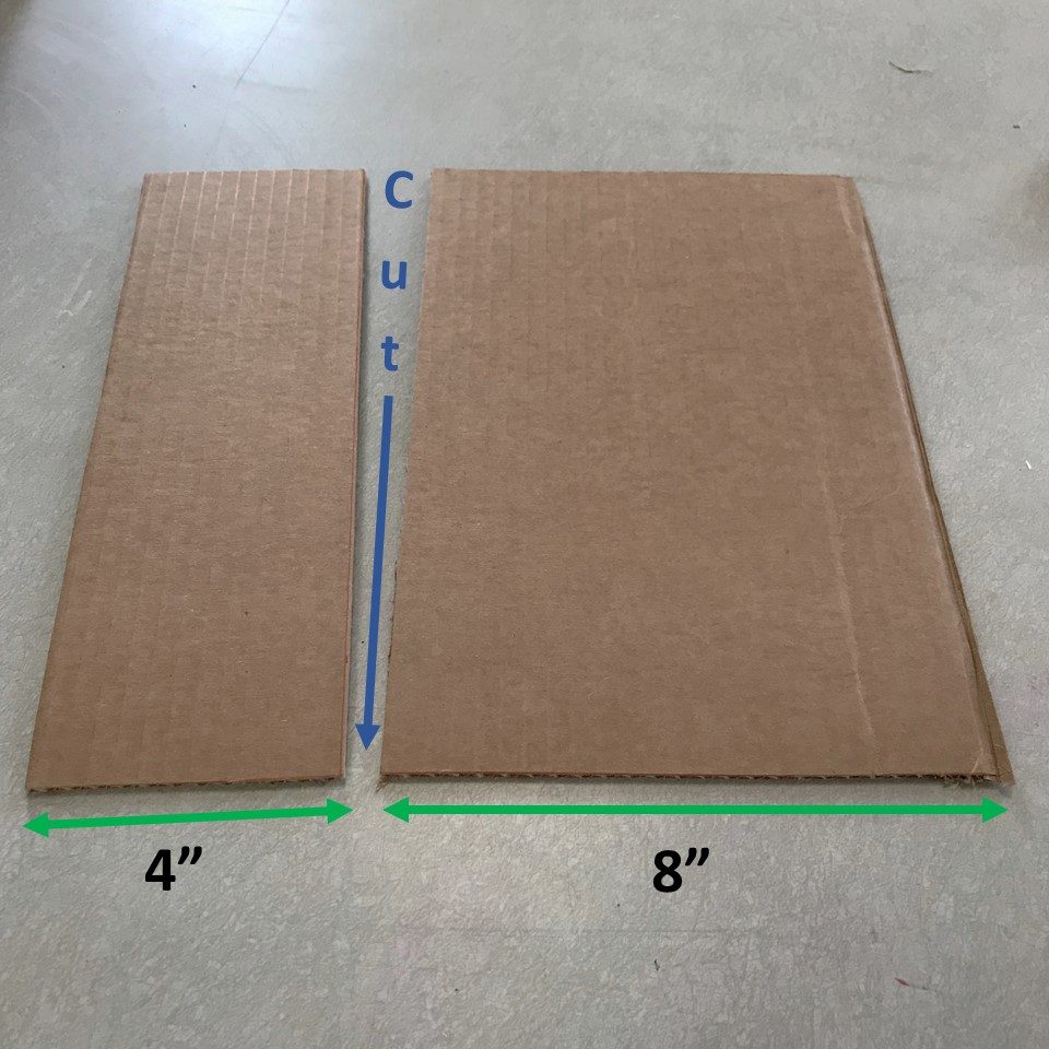 Cut that piece into a 12-inch by 4-inch piece and a 12-inch by 8-inch piece.