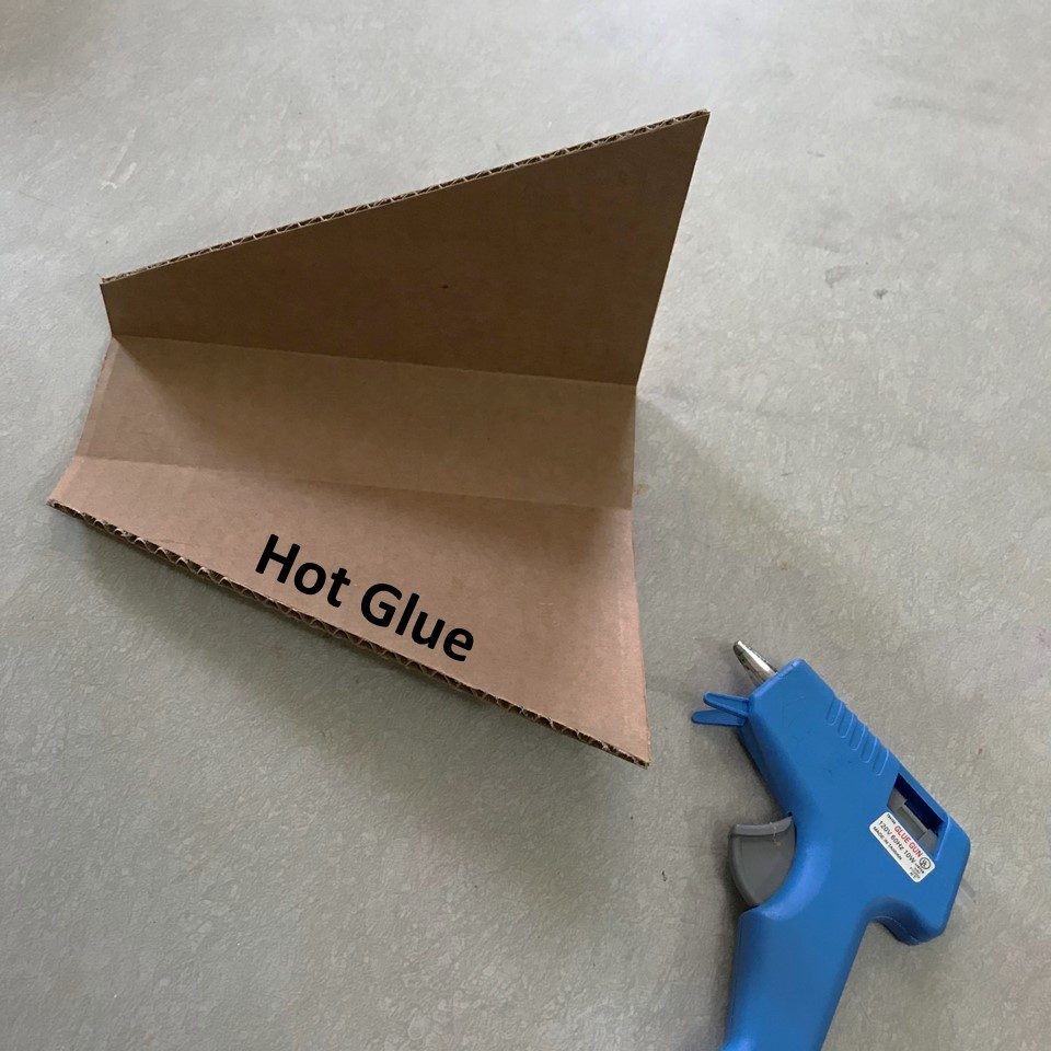Put it all together by applying a line of hot glue along one edge of the base, as shown in the illustration below, and then attaching one outside edge of the ramp.