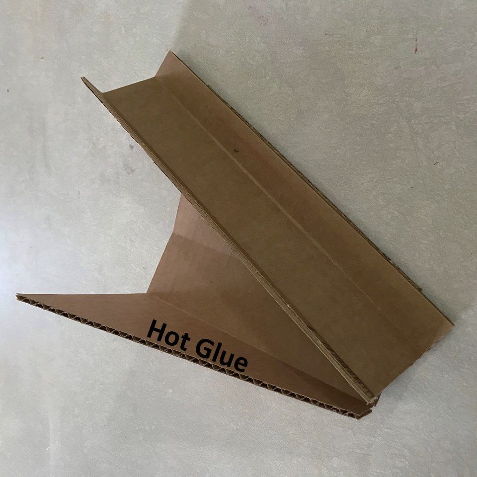 After letting the glue set up for a few moments, apply glue to the other base edge and attach it to the ramp side, as seen below.