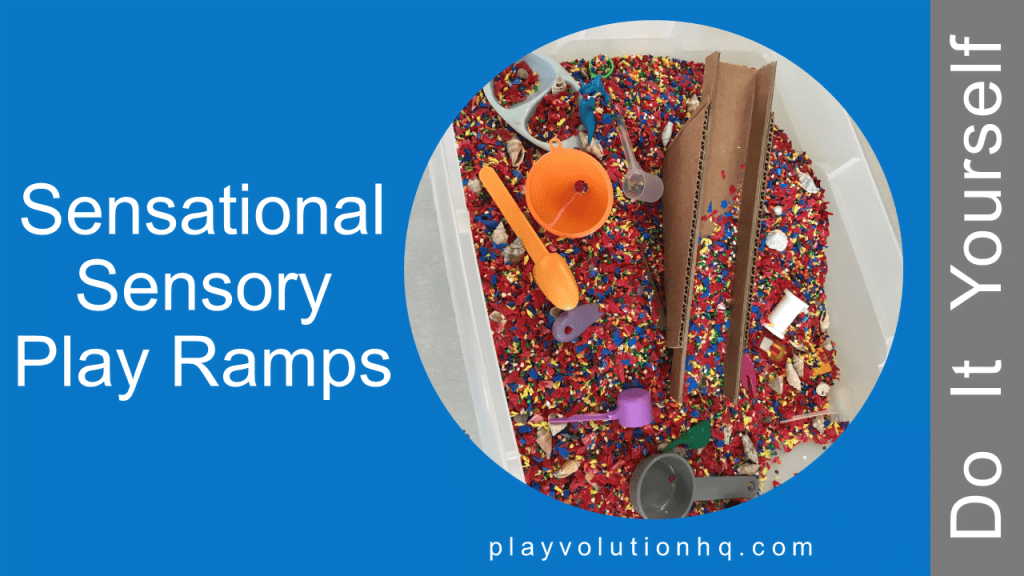 Making sensory play ramps with kids provides a chance for them to hone a variety of skills. After making a few on your own to get comfortable with the process, create more with kids’ help. DIY projects like this are rich in opportunities for STEM and other learning. Check out this post for more reasons to DIY with kids.