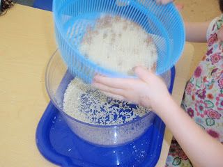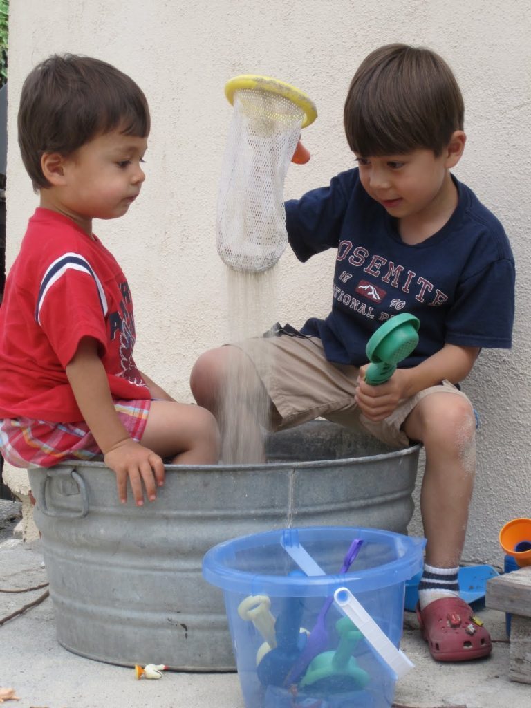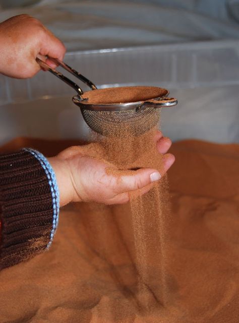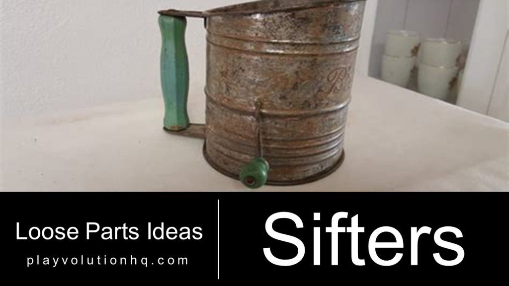 There are many styles of sifters, or things that can be used for sifting, and all of them make interesting and engaging loose parts. Sifting builds muscle control skills and visual skills. It also helps kids bump up against concepts like Large and Small and words like Filter.