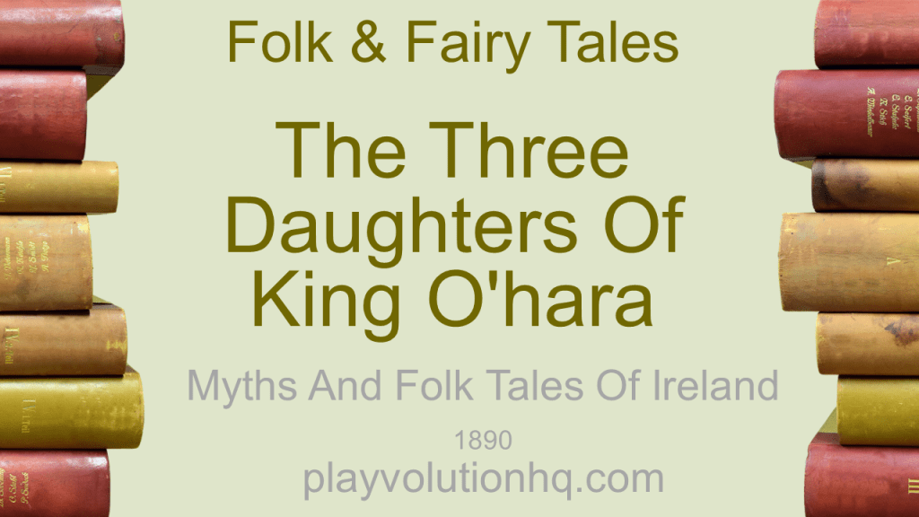 There was a king in Desmond whose name was Coluath O’Hara, and he had three daughters. On a time when the king was away from home, the eldest daughter took a thought that she’d like to be married. So she went up in the castle, put on the cloak of darkness which her father had, and wished for the most beautiful man under the sun as a husband for herself.