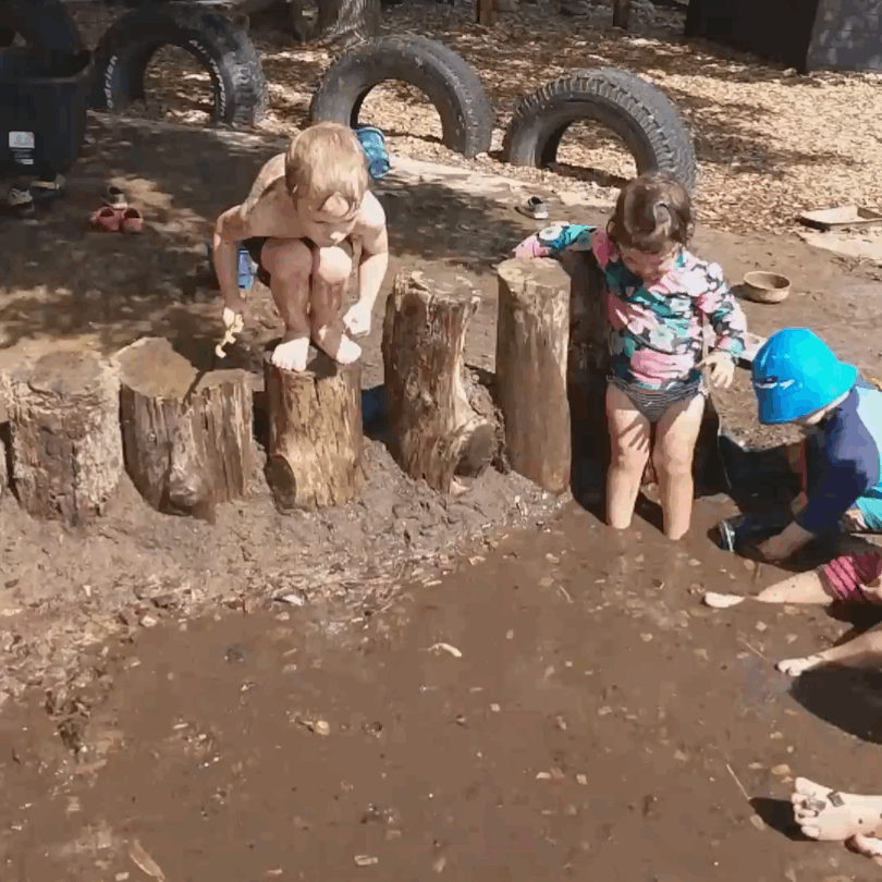 • If you’re feeling really adventurous, you can make mud play and sprinkler play available simultaneously and urge them to wrap up their play with a rinse in the sprinkler before moving on to something else.