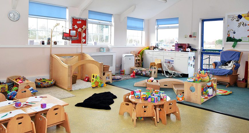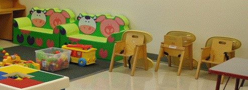 Another generally nice play space with too many chairs. More open space than in the last picture, but I still count 12 toddler chairs.