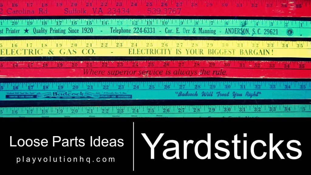 Yardsticks are great additions to your play area if you’re interested in helping kids engage in play that allows them to brush up against early numeracy and STEM learning. They’ll also spark lots of conversation as kids fiddle and fuss with them during block play, ramp play, tinkering projects, dramatic play, and more self-guided play and exploration.